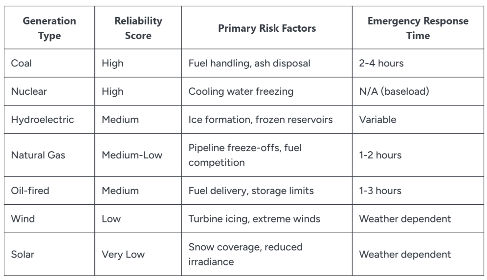 Coal-fired generation offers distinct operational advantages during extreme weather events that stem from its fuel storage characteristics. Unlike natural gas infrastructure, which depends on pipeline networks vulnerable to freeze-offs and residential heating priority allocation, coal plants maintain on-site fuel inventories that cannot be redirected for competing uses during supply crunches.
